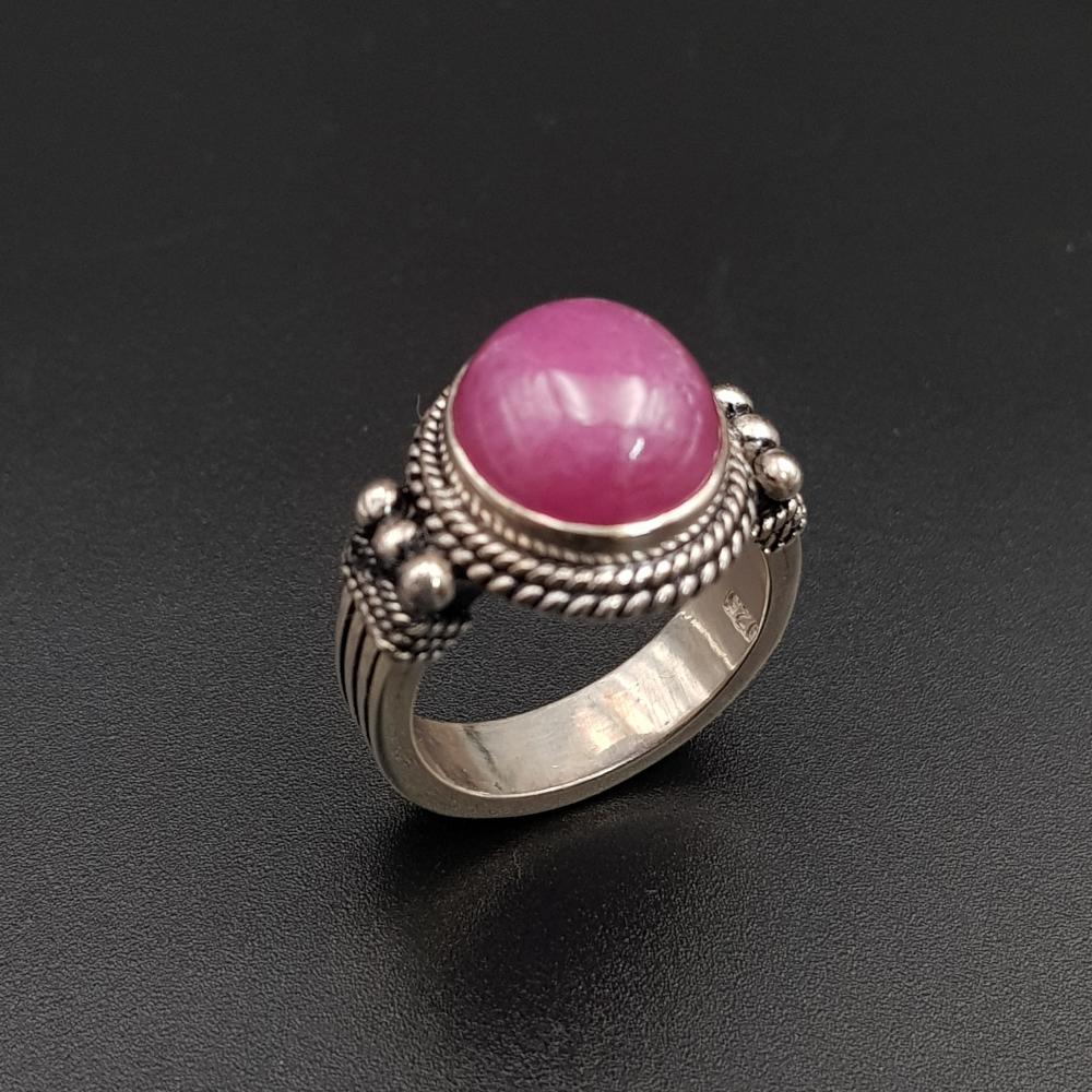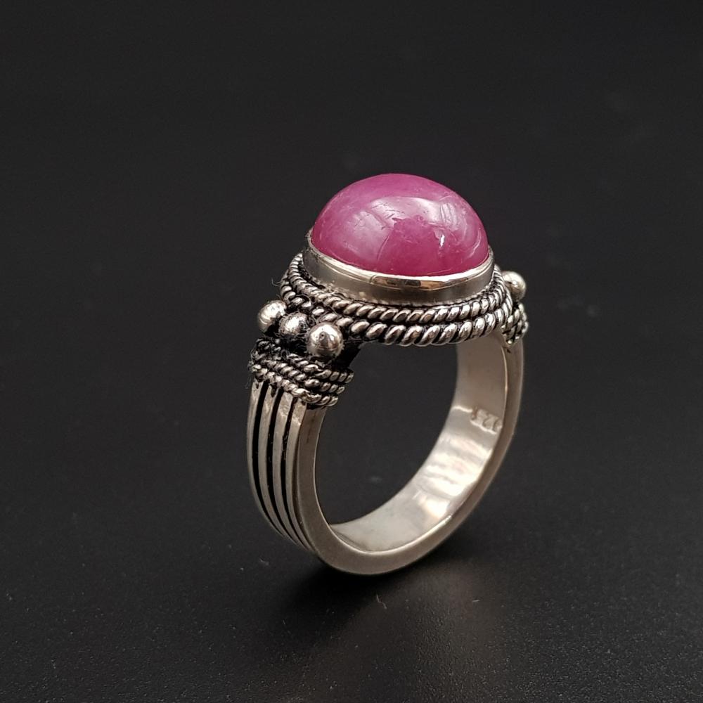 خاتم بحجر الياقوت الطبيعي بصياغة نجرانية فضة 925